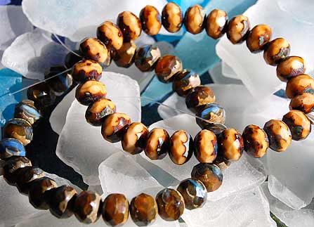 […] my own seed bead stash to find a hank of size 11 gold luster caramel colored beads I purchased in Frankenmuth, Michigan last year. I think they frame the cab very […]