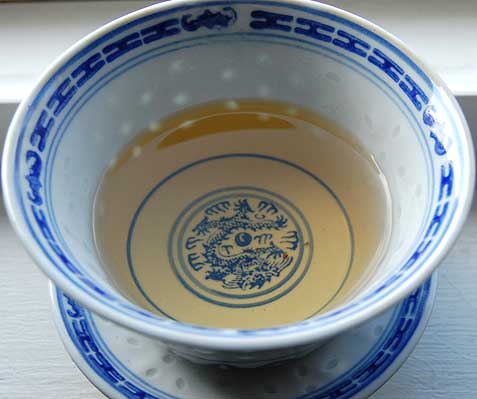 The tea liquor is the color of a white tea, having some of its delicate flavor characteristics as well. Notes of honey and fruit caress your tongue as you sip from your cup. This tea is great for multiple steepings so I can keep adding water to my teapot all day long. My first steeping was 4 minutes with 180 degree F water. I will decrease my steep time as I go along but keep the water temperature the same. Since 80% of the caffeine is extracted in the first 30 seconds, each subsequent brew will be decaffeinated.