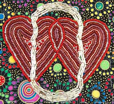 My February page is finished. In honoring of relationships and love, my page symbolizes what happens when 2 people love and nourish each other. Their hearts touch and a beautiful silver river flows from one heart to the other and back again in a continuous flow of love, sharing and nurturing.