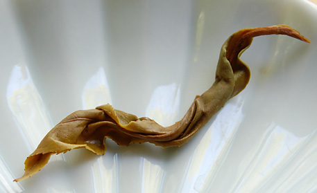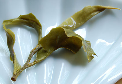 The beauty and quality of the leaf is apparent in this full leaf set I extracted from my steeped leaf. Guidelines call for an 8-11 minute steeping time in 180 degree F water. As I only had a precious 4 grams of this tea, I wanted to be able to resteep the leaves so my first steeping was at 3 minutes. The resulting liquor is a pale straw color with crisp delicate vegetal notes. It was very light tasting.