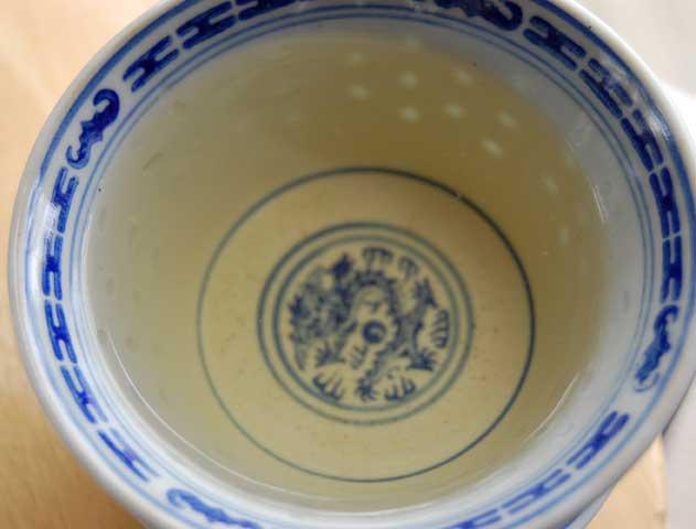I steeped the leaves in 180 degree F water for 3 minutes. While some of the leaves uncurled a little, most remained curled in their originally processed state. Their color reflects the beautiful spring green of our trees. The liquor is a very pale brownish olive green with a distinct vegetal aroma.
