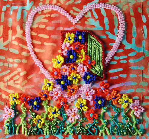 Today was a dark and dreary rainy day, a good day to spend time inside in my studio with a cup of tea by my side. I started out the day by cleaning and organizing the studio and then set to work on my May beaded journal page.