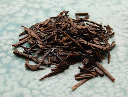 In my research, I have discovered that this type of tea was first created in Kyoto, Japan in the 1920s by a merchant but I have not been able to find out why. Perhaps he wanted to “spice” up the taste of the common grade of green tea. I have also read that the roasting process lowers the caffeine content of the leaf. I don’t understand that since all tea leaves are heated up to halt the oxidation process. Personally, I think this tea is lower in caffeine because it is common to have twigs from the tea plant mixed in. There isn’t any caffeine in the twigs.