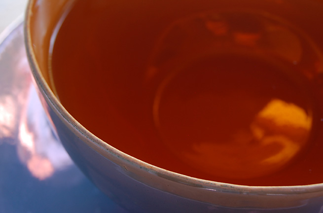 The beautiful amber liquor glows like a jewel in my glass teapot inviting me to pour my first cup.