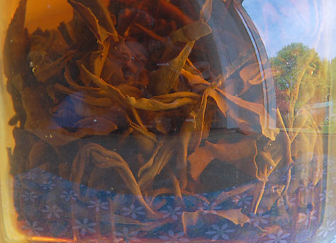 A honeyed aroma rising from my glass teapot reminds me of a dark Oolong tea.
