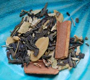 To start the holiday weekend festivities, this morning’s tea is a decadent treat – an India black tea (my guess is Assam) with cardamom pods and cocoa and cinnamon pieces – called Melange de Chamonix. Named after the luxurious resort in the French Alps, this is indeed a luxuriant morning treat. Yum.