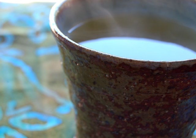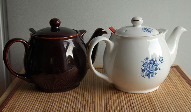 Shopping at the local mall a couple of nights ago, I stopped into a tea store there and found these interesting pottery teamugs on the clearance shelf. The coppery/sage green mottled exterior is rough and textured with a smooth, pale blue interior. I love the juxtaposition of textures and the way the mug feels slightly rough against my palm. I also love finding treasures, especially those at 75% off!