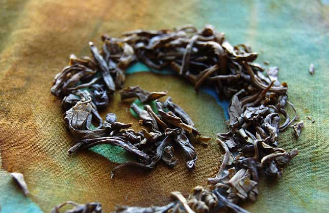 Upon steeping for 3 minutes in 180 degree F water, the tightly rolled leaves open slightly to reveal their curled edges.
