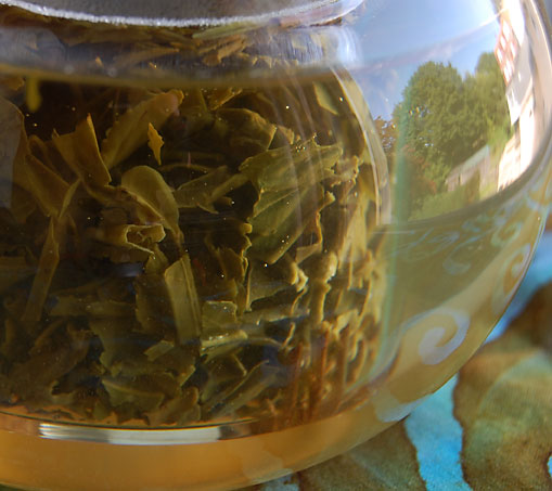 On this hazy summer morning in my pleasantly cooled kitchen, I’m lazily sipping a Chinese green tea called Chun Mee. Traditionally, the Chinese have always been quite fond of rolling the tea leaf into various shapes and then naming the tea accordingly. Chun Mee translates to “Precious Eyebrows”. Can you see it?