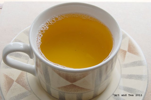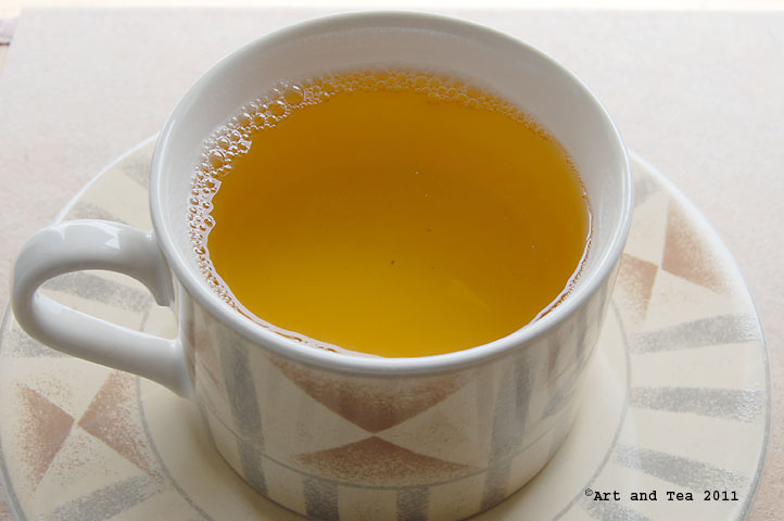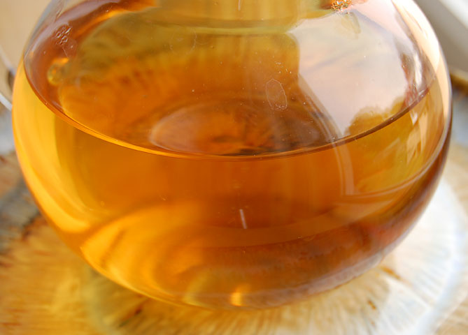 The leaves may be intensely green but the liquor they produce is a golden yellow, creating pearl bubbles of light in my glass teapot.
