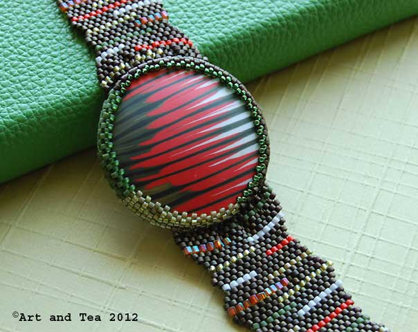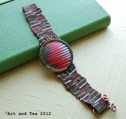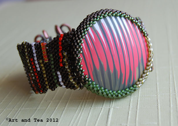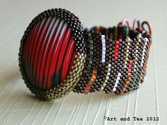 I’m really enjoying my foray into the geometric beady world these days. Stay tuned for further adventures as I explore beading a cuff with “horns and wings”. Think Klingon warrior and the colors of tea!