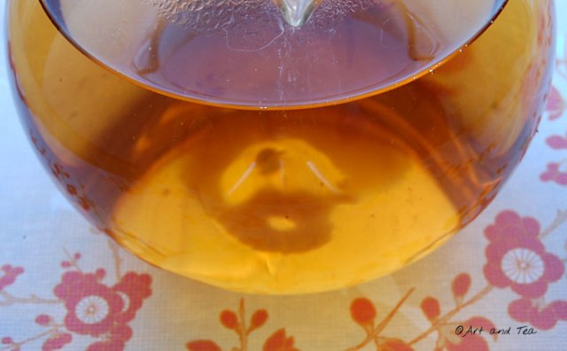 The vibrant amber-colored tea liquor has a light, fruity fragrance.