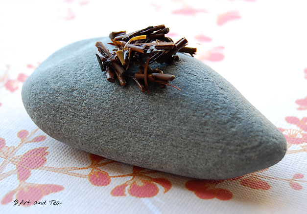 The leaf is a gorgeous variegated mix of color – browns, greens and silvery white tips. I pushed the steeping time a little longer than normal, 3 1/2 minutes in boiling point (212F) water.