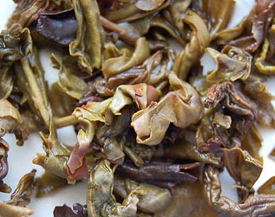 As you can see, this particular green tea has quite a large leaf. After steeping for 3 minutes in 180 degree F water, some of the twisted full leaf releases that shape and some stay tight. As I poured my first cup, a distinct vegetal aroma rose from my glass teapot.