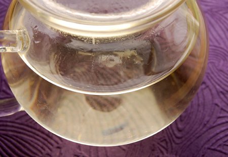 I steeped the leaves for 3 minutes in 180F water. A savory aroma wafted up from the leaves as they released their flavor to the water.
