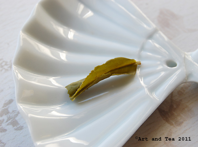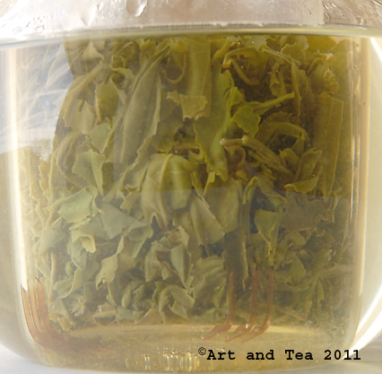 I steeped the leaf for 3 minutes in 180 F water. I noticed that I used 160 F water back in 2008. I think that I’ll steep another pot using that temp as, right away, I taste a bit of a tang on my tongue. Have you ever had a cup of green tea that you thought was too pungent? More than likely, the water temp was too hot for steeping the leaf.