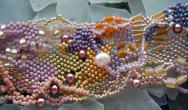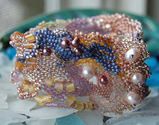 Last week I picked up a beading book at the library. As I have been getting into a more personally expressive and organic, free-form flow with my beadwork, I have lost interest in books and magazines devoted to beadwork patterns and other artists’ designs. However, the title of this book, “Shaped Beadwork: Dimensional Jewelry with Peyote Stitch”, caught my eye and my interest.