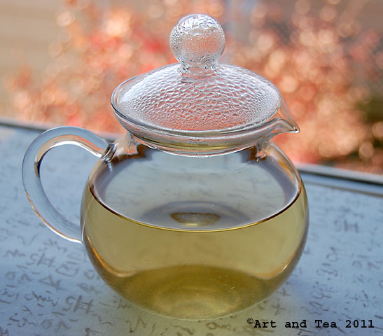Good morning, dear tea friends! I steeped a special tea in my glass teapot this morning. Hint: it was harvested in China before April 5th and its name references a small creature that lives in a shell.