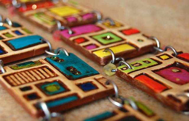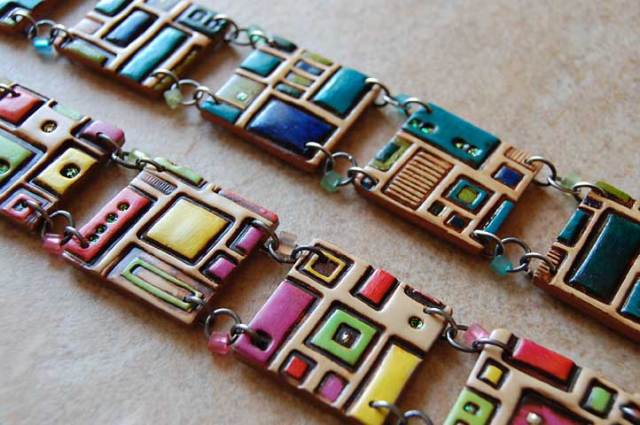 Many years later, my love of digging led me to pick up my carving tool and start experimenting with digging into multi-colored layers of polymer clay. I gouged through the layers both before and after baking the clay to reveal what’s hidden below the surface. The gouge marks leave jagged edges which I don’t smooth by sanding. I leave the clay rough which speaks to me of the organic process of a spiritual journey and digging into/peeling away the layers of the psyche to discover your inner core. The process can be sharp-edged and painful at times but what is ultimately revealed has a beauty all its own, rich and colorful and unique.